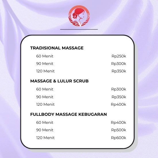 Kami menawarkan berbagai jenis layanan massage yang dirancang untuk membantu Anda merilekskan tubuh, mengurangi stres, dan meningkatkan kesehatan secara keseluruhan. Berikut adalah beberapa layanan unggulan kami